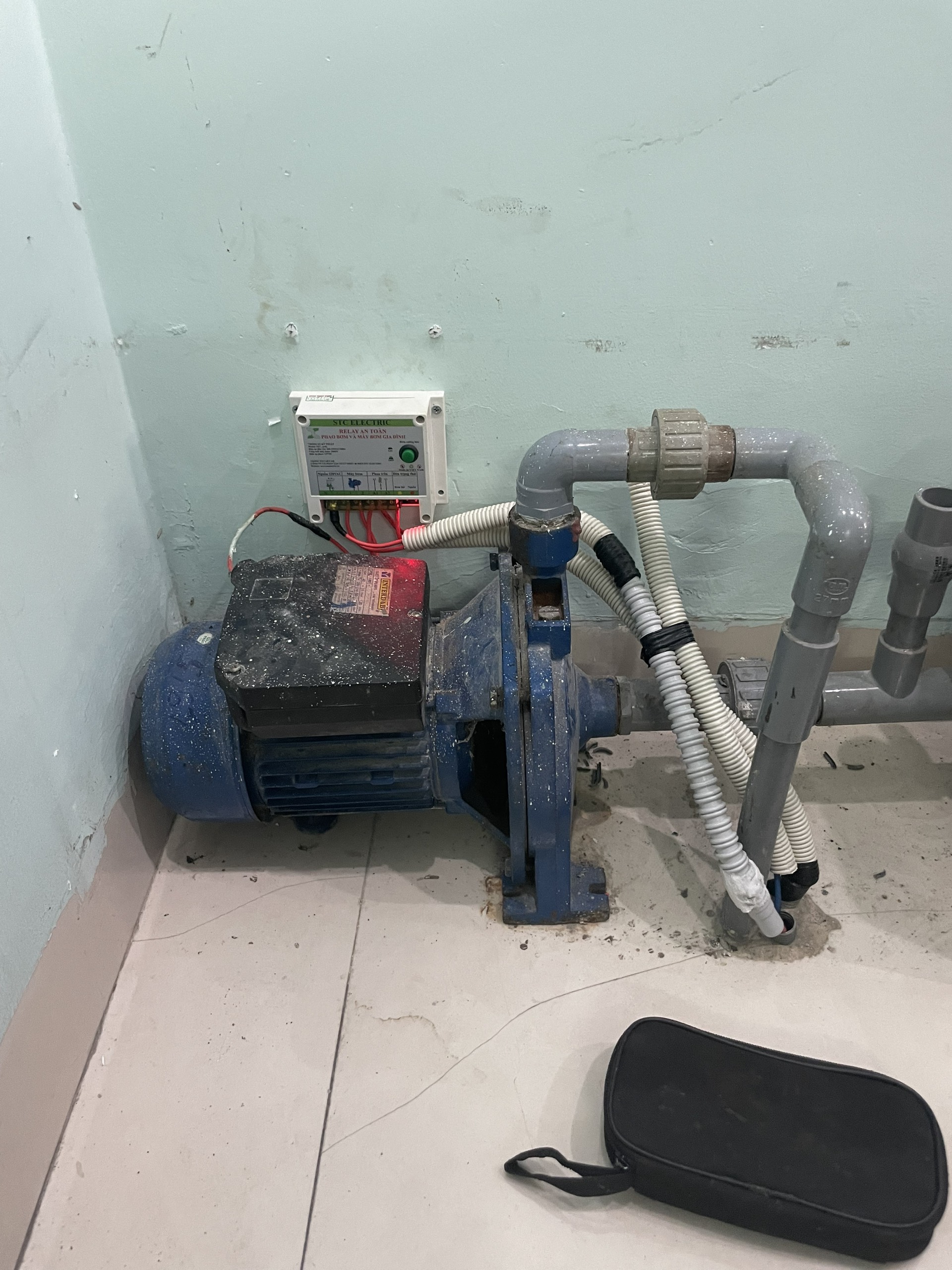Thợ chuyên bơm gia dụng/tăng áp, mang đủ đồ nghề đo điện – đo áp.